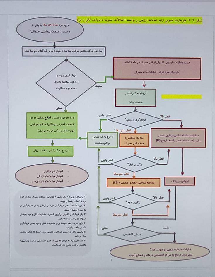 فلوچارت عمومی ارائه خدمات ارزیابی و مراقبت اختلالات مصرف دخانیات ، الکل و مواد